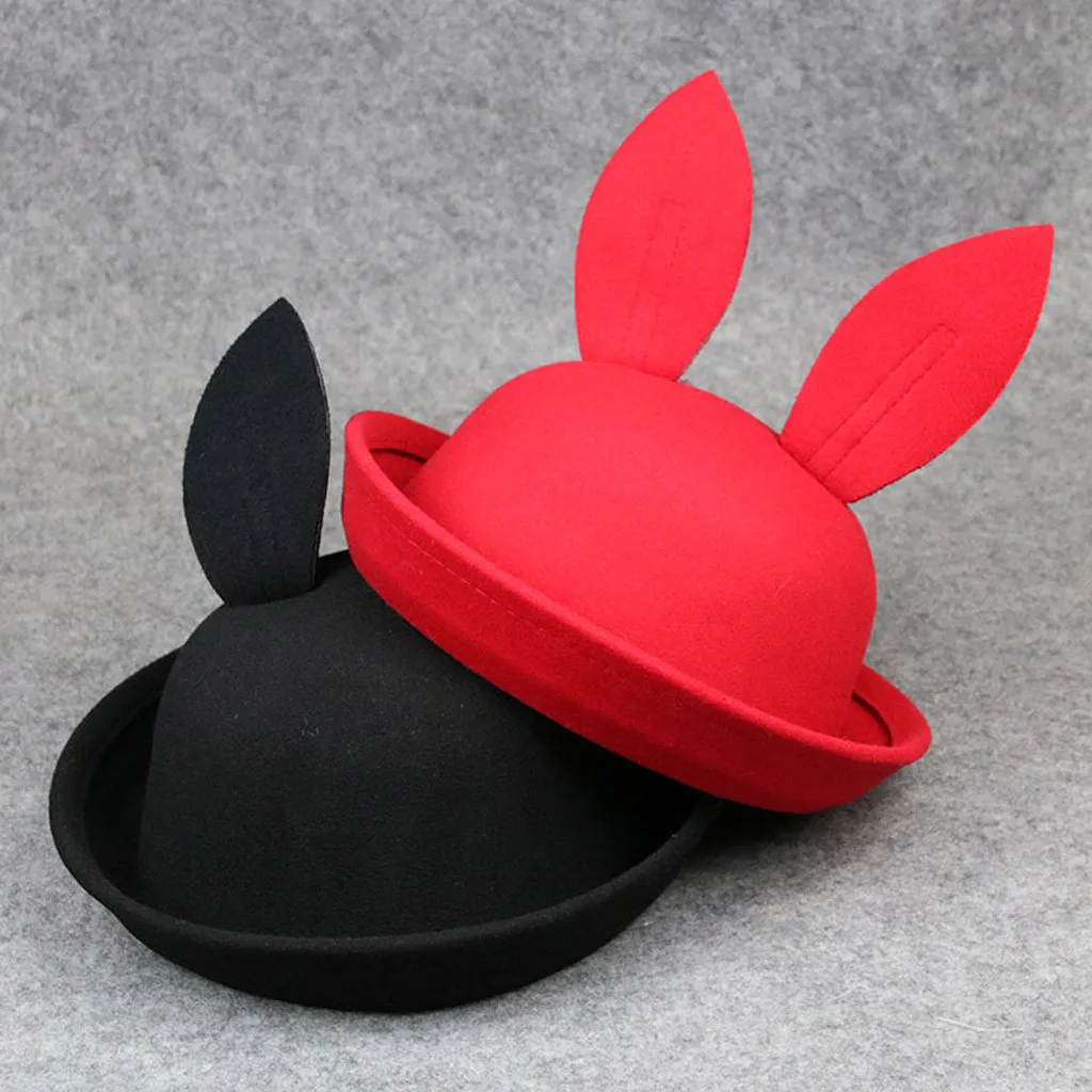 Весенняя шерстяная шапка с заячьими ушками для маленьких детей; одноцветная шляпа в рыбацком стиле