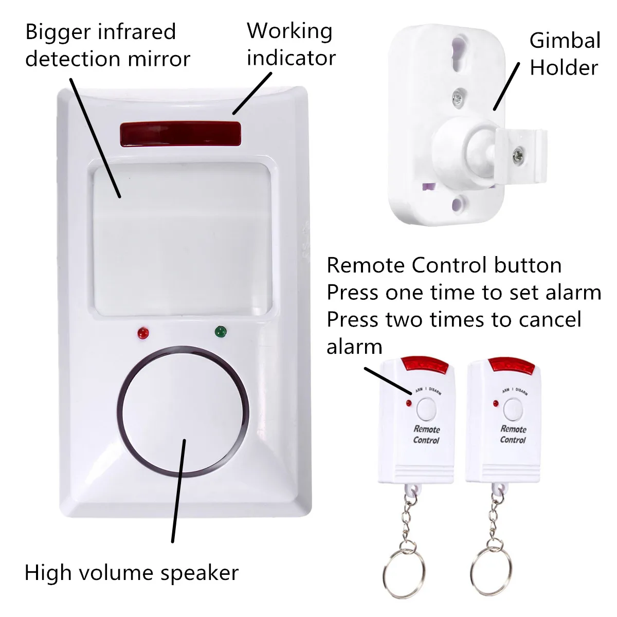 3. После 10 с, если есть кто-то, входящий в область детектива, это задержится для 5s, давая вам возможность показать, что вы являетесь собственником, используя пульт дистанционного управления. После 5s, он будет гудеть в течение 30 с, если он не получит какой-либо сигнал.