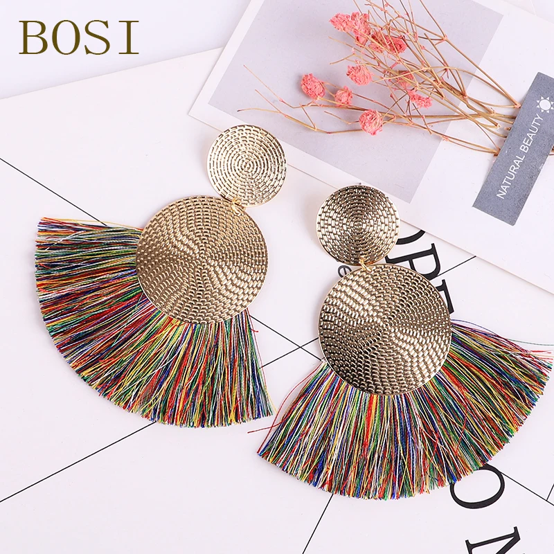 Название продукта: Богемные висячие серьги в стиле бохо с кисточками для женщин, шелковое волокно, хлопок, Lunghi Oorbellen, преувеличенная вышивка, винтажная Этническая бижутерия CC