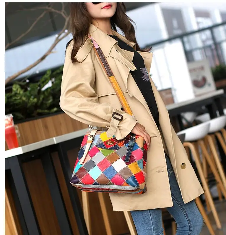 1. Красочные сумки сделаны с неправильной строчкой/лоскутным процессом, Каждая сумка уникальна и цвет