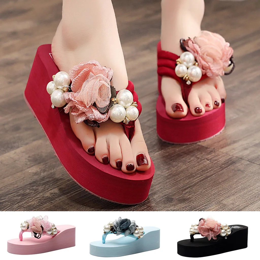 Женские вьетнамки на танкетке с цветочным рисунком в богемном стиле; сандалии; шлепанцы; пляжная обувь