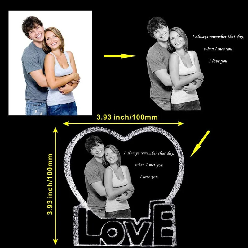 Фотографии легко выцветают, персонализированное лазерное гравированное Кристальное фото не исчезнет, это станет идеальным подарком для нее, это также может стать романтическим подарком на свадьбу для нее или для него, впечатляющий Подарок на годовщину для вашей любимой, подарок на день рождения для вашего друга и подруги, особый сюрприз для Дня матери и дня отца.