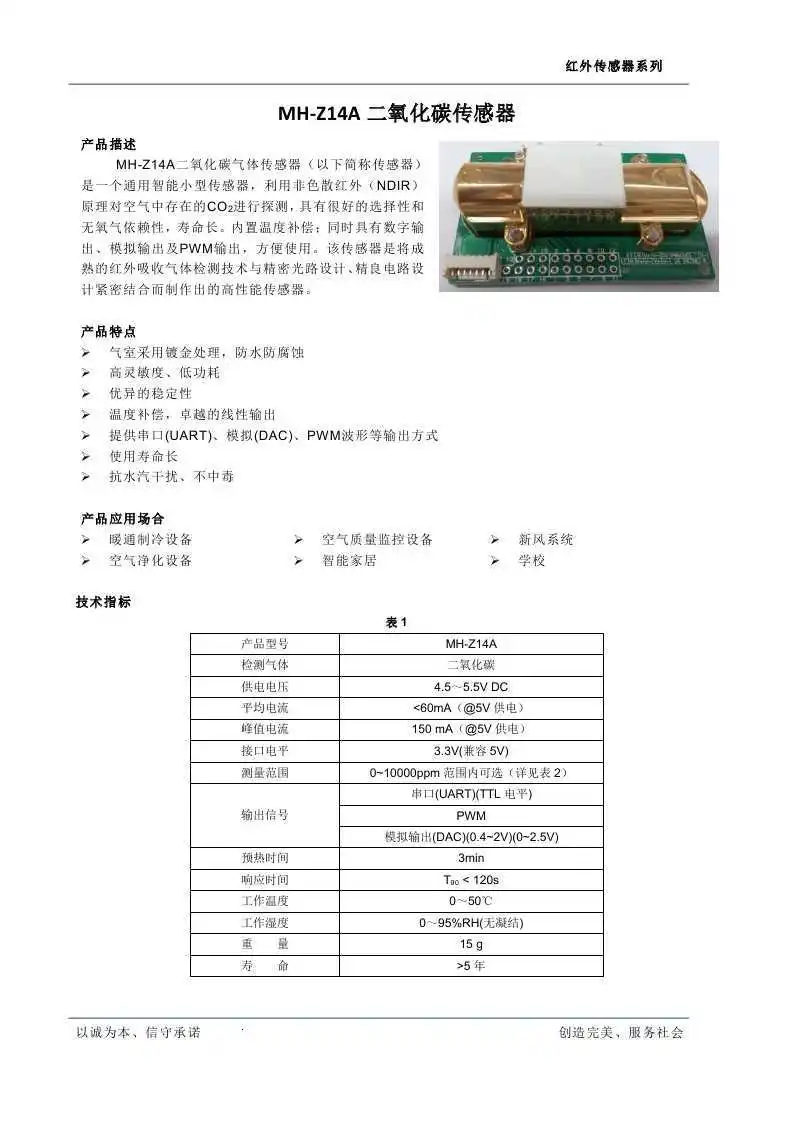 1. Рабочее напряжение: DC4-6V 2. Рабочий ток: 50 мА, средний | И mdash; Пиковый 100 мА 3. Диапазон обнаружения: 0-5 000 ч./мин 4. Точность обнаружения: и plusmn; 50ppm 5. Время подогрева: 180 с 6. Аналоговым выходом напряжения: 0,4-2v (линейный выход) 7. Цифровой выход: выход последовательных данных (9600, N, 8, 1) 8. Время отклика: & le; 30S 9. Рабочая температура: 0-60 с 10. Рабочая влажность: 0-90% RH 11. Температура хранения: -20-60 с 12. Срок службы: 5 лет 13. Размер: 57 мм, время, 35 мм, время, 15 мм 14. Вес и размер: 35 г Характеристика: 1. Три способа выхода сигнала; (аналоговый выход/последовательный UCHAR выход) 2. Последовательный сигнал Uchar может быть подключен к последовательному порту IO с одним чипом; (TTL уровень 9600, N,8,1)(предоставьте примера программ) 3. Аналоговый линейный Output0.4-2 в, чем выше концентрация, тем выше напряжение. 4. С выходом формы волны PWM, более удобно читать. 5. Модульная технология NDIR имеет хороший выбор для углекислого газа. 6. Модуль имеет характеристики легкого веса, компактного объема, длительного срока службы и хорошей стабильности. Этот модуль может быть широко использован для контроля качества воздуха и ОВКВ, мониторинга промышленного процесса и безопасности, мониторинга производственного процесса в области сельского хозяйства и животноводства, а также обнаружения углекислого газа системы свежего воздуха. | |