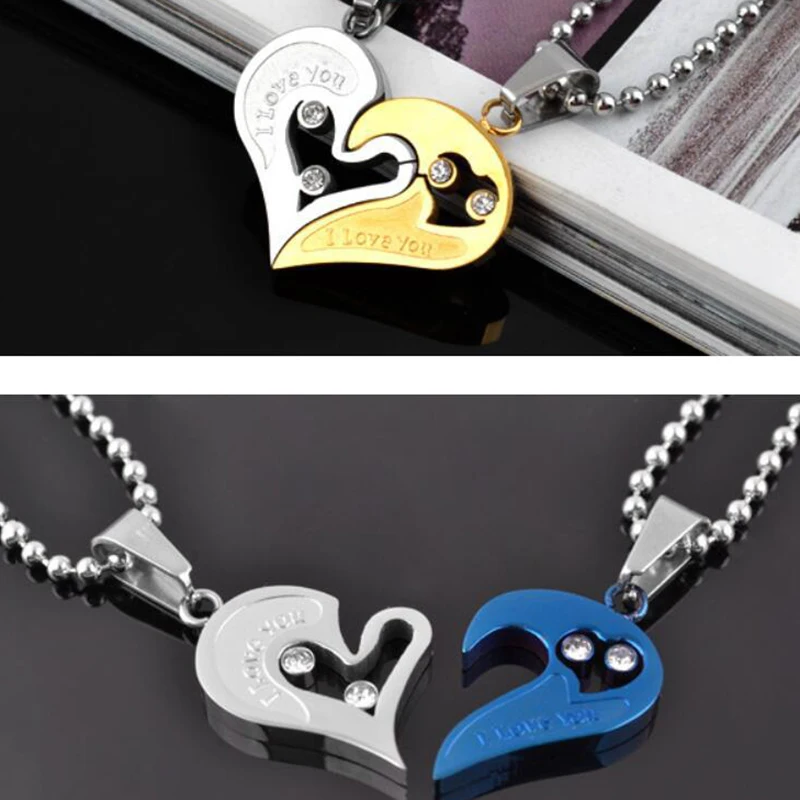 2 шт пара ювелирных изделий сердце любовь кулон ожерелья для женщин мужчин золото серебро ожерелье из нержавеющей стали гравировка I Love You ketting