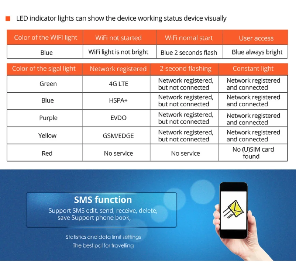 1. Портативный размер, легко носить с собой. Хороший партнер в работе. 2. До 5-10 WiFi одновременно 3. Высокая скорость, скорость загрузки до 150 Мбит/с (только 4G LTE CAT 4.) 4. С слотом для sim-карты. Поддержка сетей globle. 5. Источник питания Usb, подключи и работай. 6. Высококачественный чипсет, качественный и надежный.