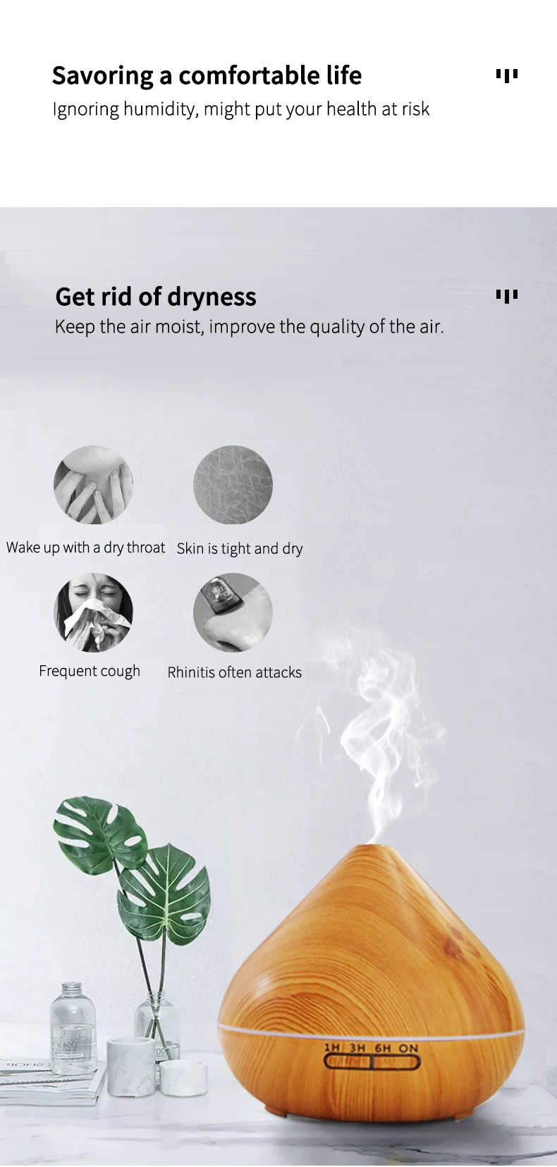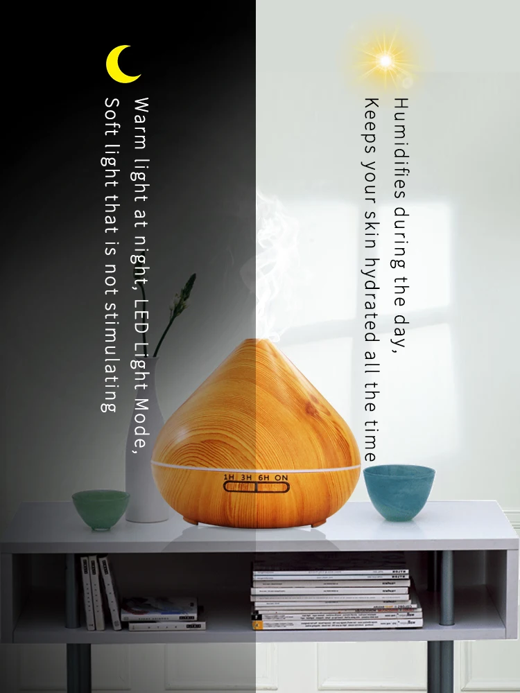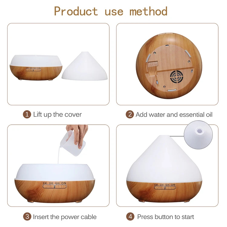-Освежающий внутренний воздух: вы можете освежить воздух через аромат, рассеиваемый ультразвуковым увлажнителем -Концентрируйтесь на своем уме: Вы можете добавить 3-5 капель эфирного масла в воду, чтобы освежить свой ум, когда у вас длинная офисная встреча или исследование в одиночестве через тонкий аромат, рассеянный увлажнителем. -Расслабьтесь перед сном: расслабьте свое тело и ум после напряженного дня. Почувствуйте себя расслабленным и комфортным благодаря деликатному аромату во всей спальне. -Домашние упражнения: Наслаждайтесь очищенным пространством и душой при занятиях йогой или простыми упражнениями на растяжение, а также чудесными ароматами во всем доме. -Украшение: увлажнитель также может использоваться в качестве вазы, но не подключается к источнику питания. Метод работы