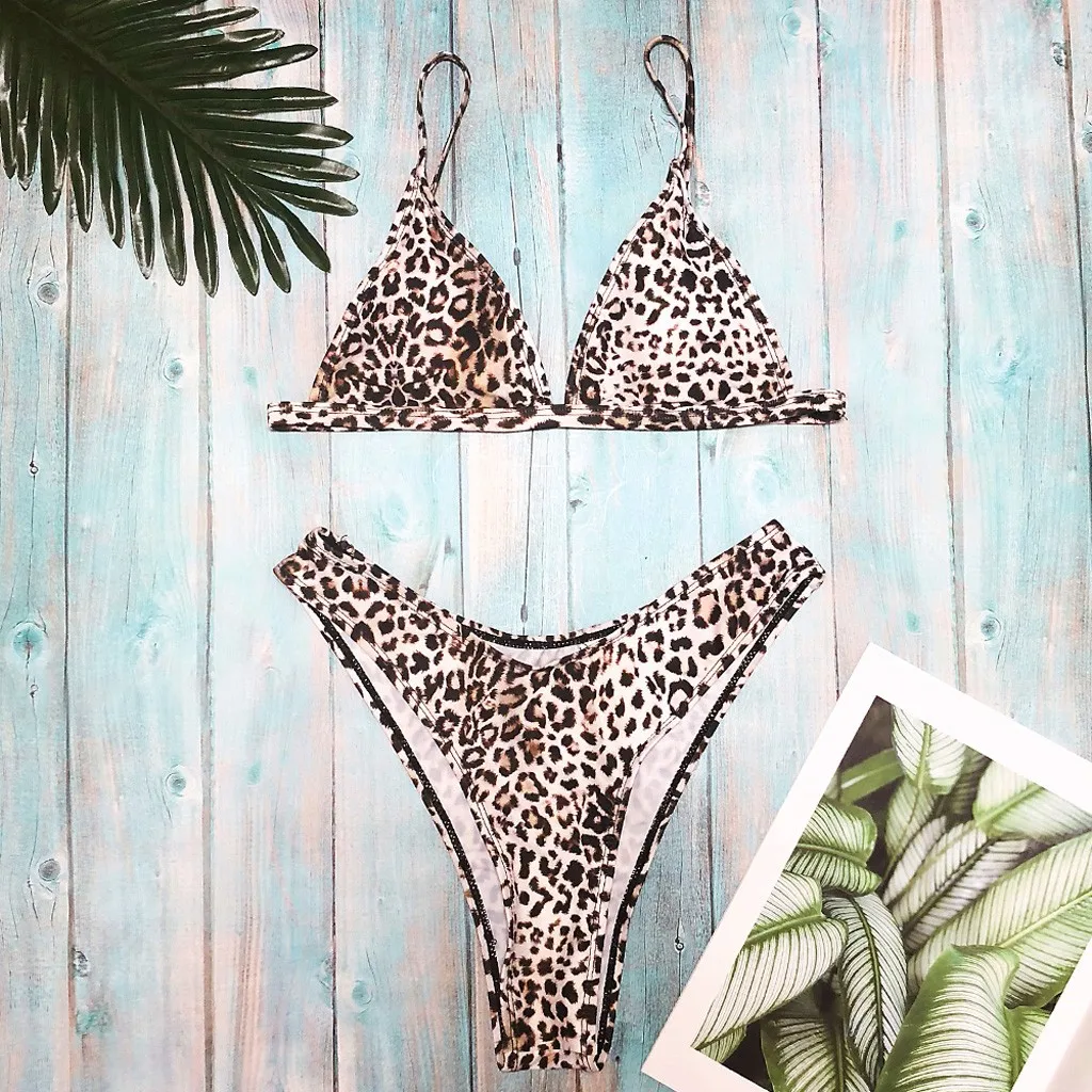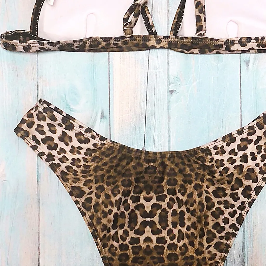 Женский летний сексуальный купальник с леопардовым принтом, пляжный комплект из двух предметов, бикини