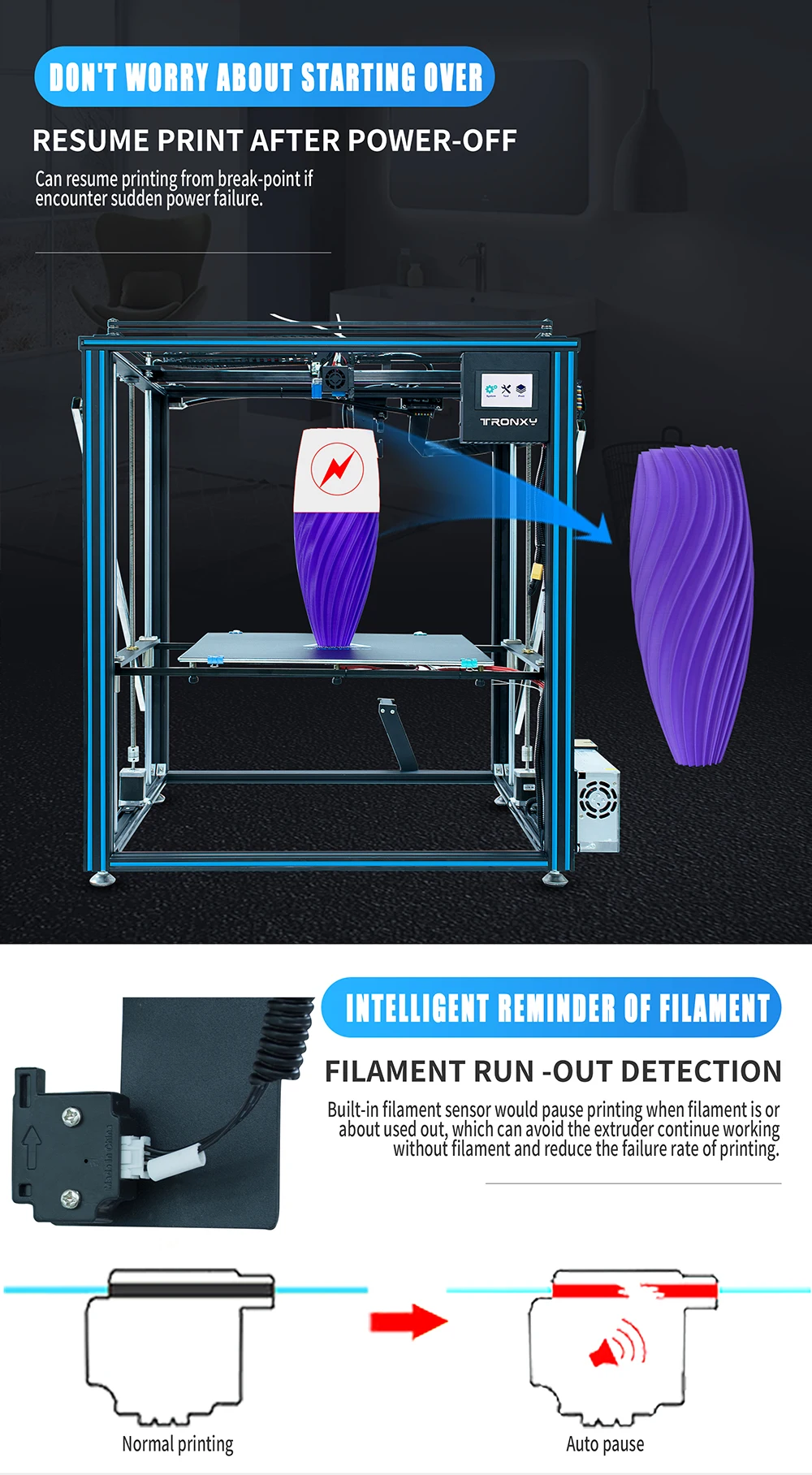 Поддерживаются функции датчика отключения питания для повторной печати/автоматического уровня/накаливания.