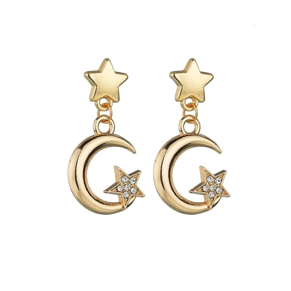 Женские серьги-капли с золотыми лунами и звездами со стразами, романтические ювелирные изделия, женские свадебные украшения ручной работы, oorbellen