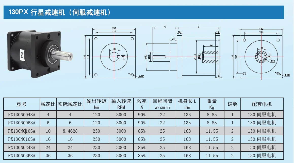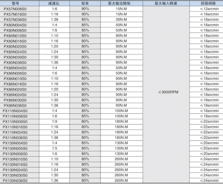 Редуктор Максимальный выходной крутящий момент, эффективность, возврат зазора Таблица: