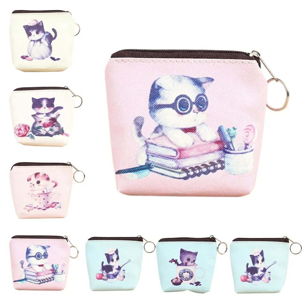 1x милый кот для женщин и девочек кожаный кошелек на молнии Сумочка для ключей, Дамский кошелек для карточек(Без розничной упаковки)