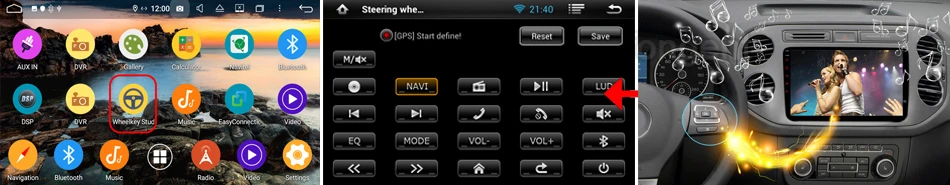 Управление рулевым колесом Дистанционный Адаптер рулевого колеса готов безопасно управлять вашей музыкой на ходу, с этой функцией, вы можете пристально фокусироваться прямо впереди, что сделает вождение более безопасным. Советы: Эта функция доступна для большинства автомобилей, может работать только с автомобилем, который поддерживает аналоговый сигнал.