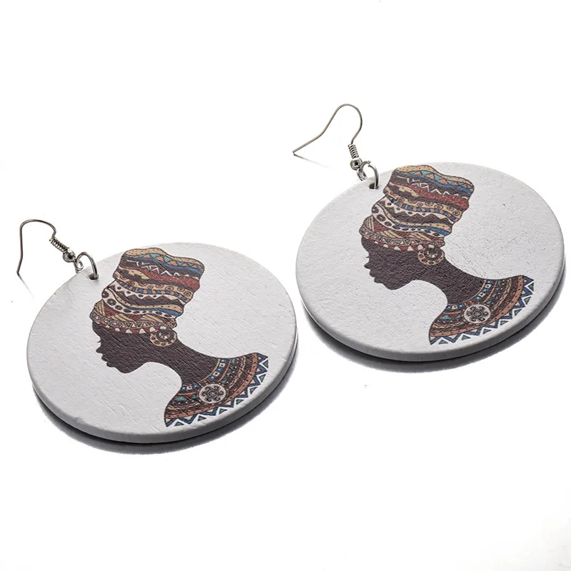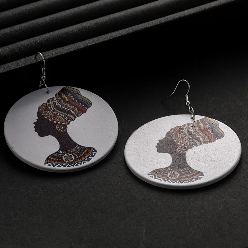 WHOMEWHO 60 см натуральная древесина белая картина африканская королева Модные женские серьги винтажные африканские ювелирные изделия деревянные DIY аксессуары