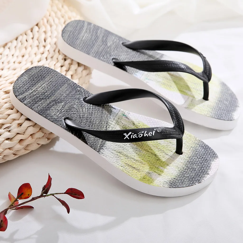 Модные тапочки для пар; нескользящие пляжные шлепанцы на плоской подошве с принтом