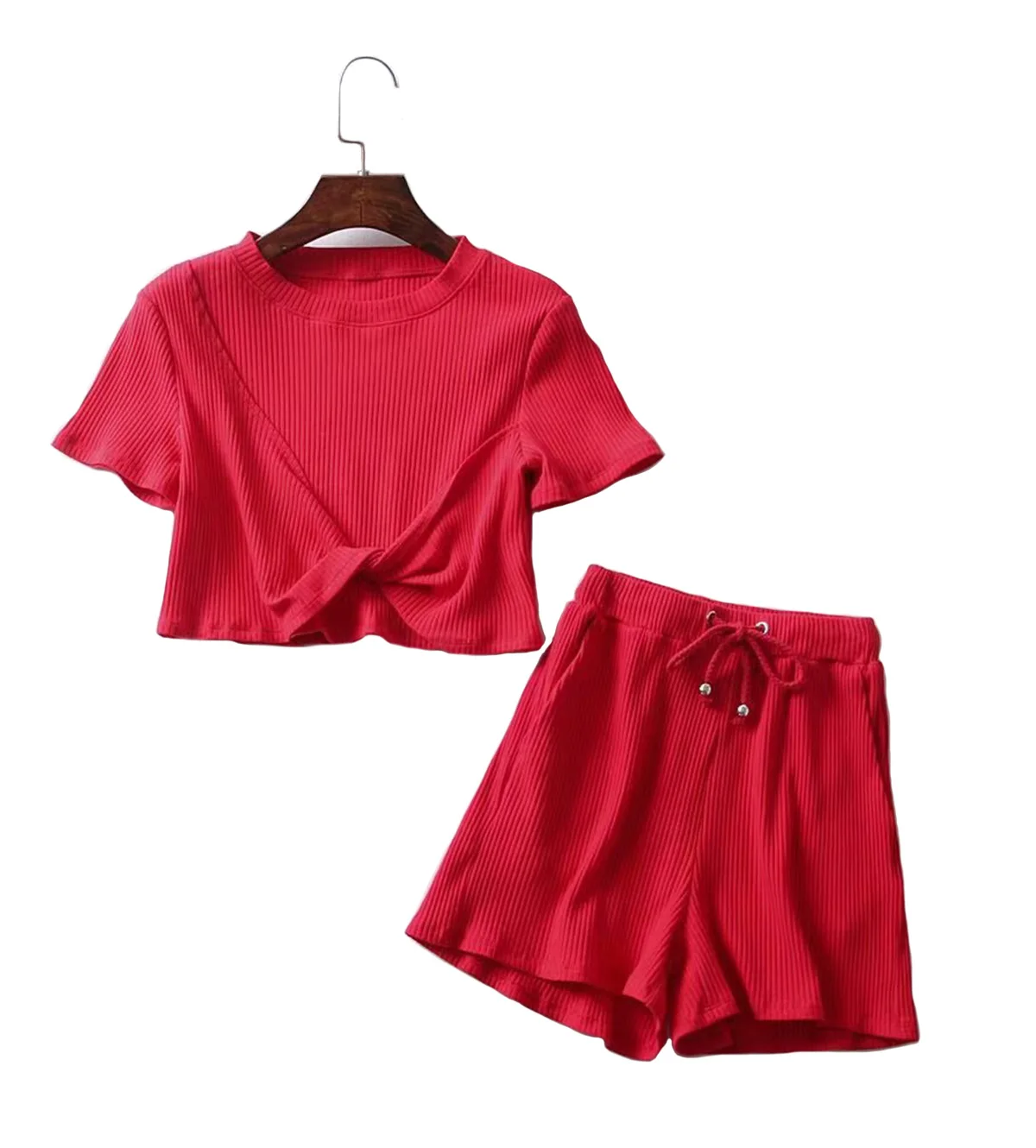 Краткое описание:Женский однотонный трикотажный костюм с короткими рукавами и шортами