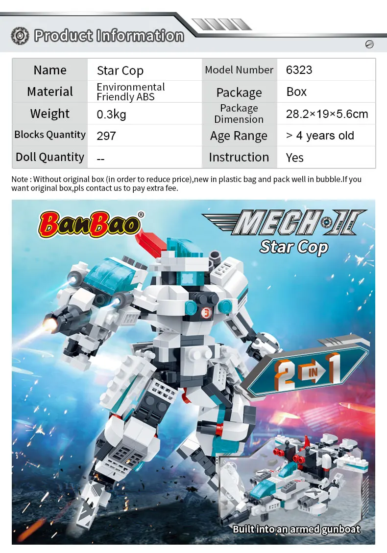 Название бренда: BanBao Партномер: 6316 6317 6317 6319 6320 6321 6322 6323 Возрастной диапазон: более 5 лет Материал: экологически чистый АБС-пластик Инструкция: Да Этот товар 2 в 1, его нельзя собрать до 2 моделей одновременно. Примечание: без оригинальной коробки (для того чтобы уменьшить цену), Новый в полиэтиленовом пакете и хорошо упакован в пузырчатую коробку. Если вы хотите оригинальную коробку, пожалуйста, свяжитесь с нами, чтобы оплатить дополнительную плату.