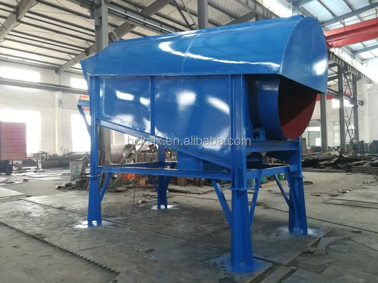 Двухслойный троммель экран Поднимается при вращении и газируется, когда он отваливается. Это действие повторяется с каждой революцией по длине барабана. Более тонкий материал проходит через отверстия экрана, в то время как больший материал переходит к выходу в задней части барабана.