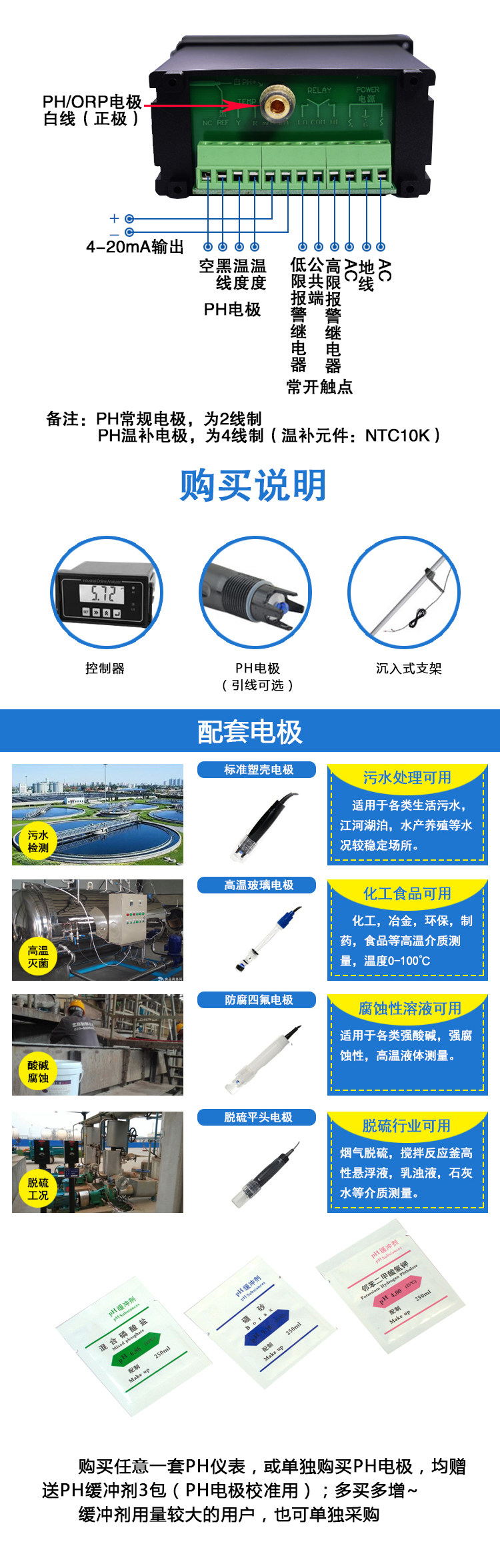 3. Он-лайн PH пластиковый корпус компенсация температуры электрод (провод 5 м)