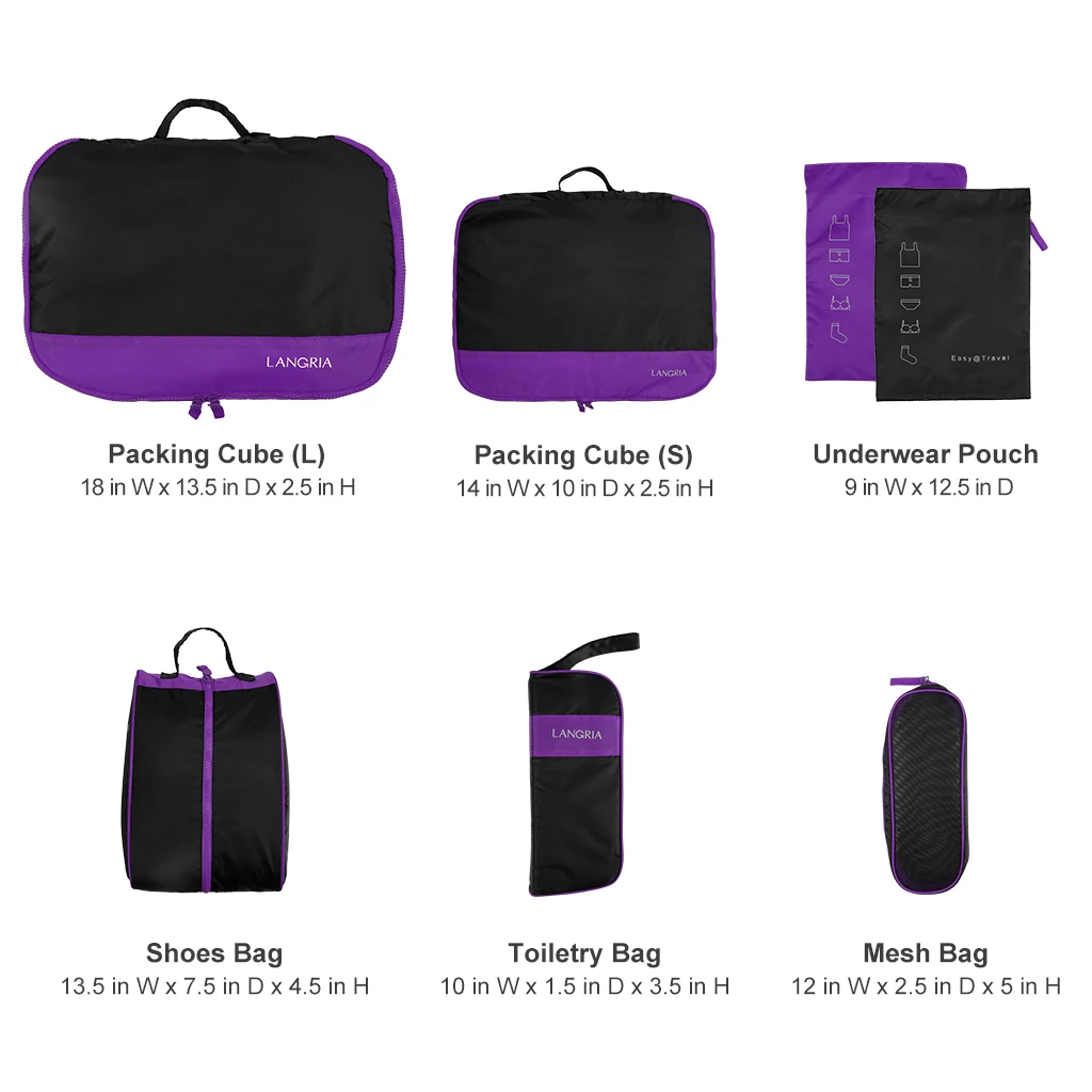 LANGRIA 7 шт./компл. Складная водонепроницаемая упаковка кубов для путешествий чемодан сумка органайзер одежда для деловых поездок рюкзак