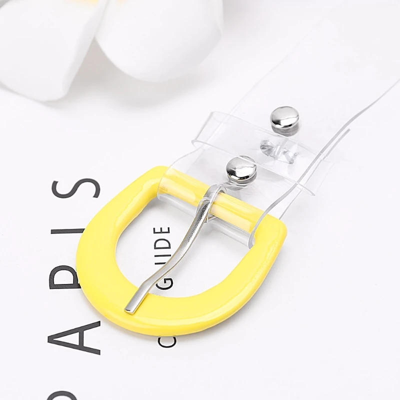 Прозрачный пояс с цветной пряжкой, уникальный и практичный дизайн.