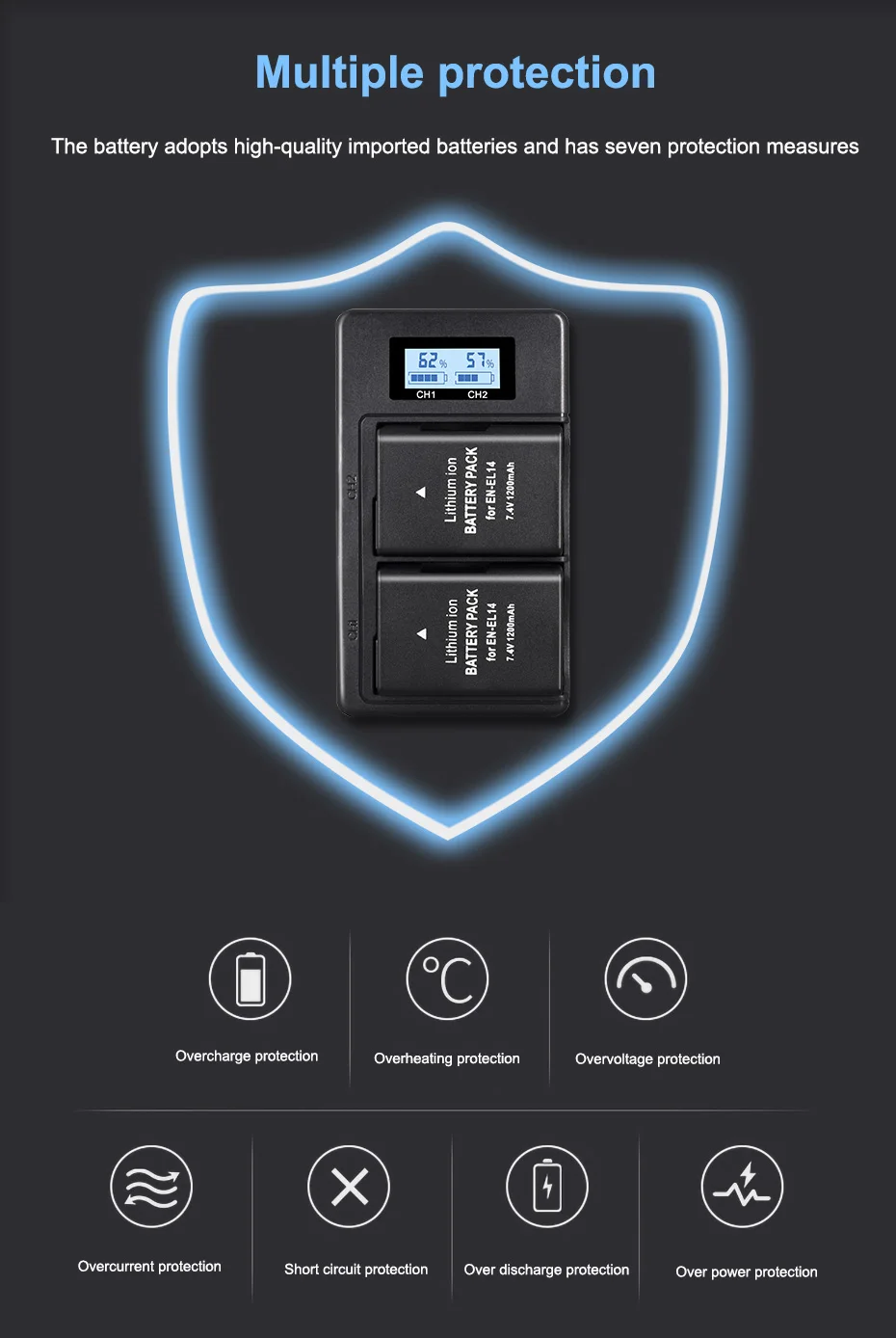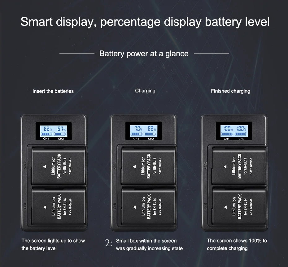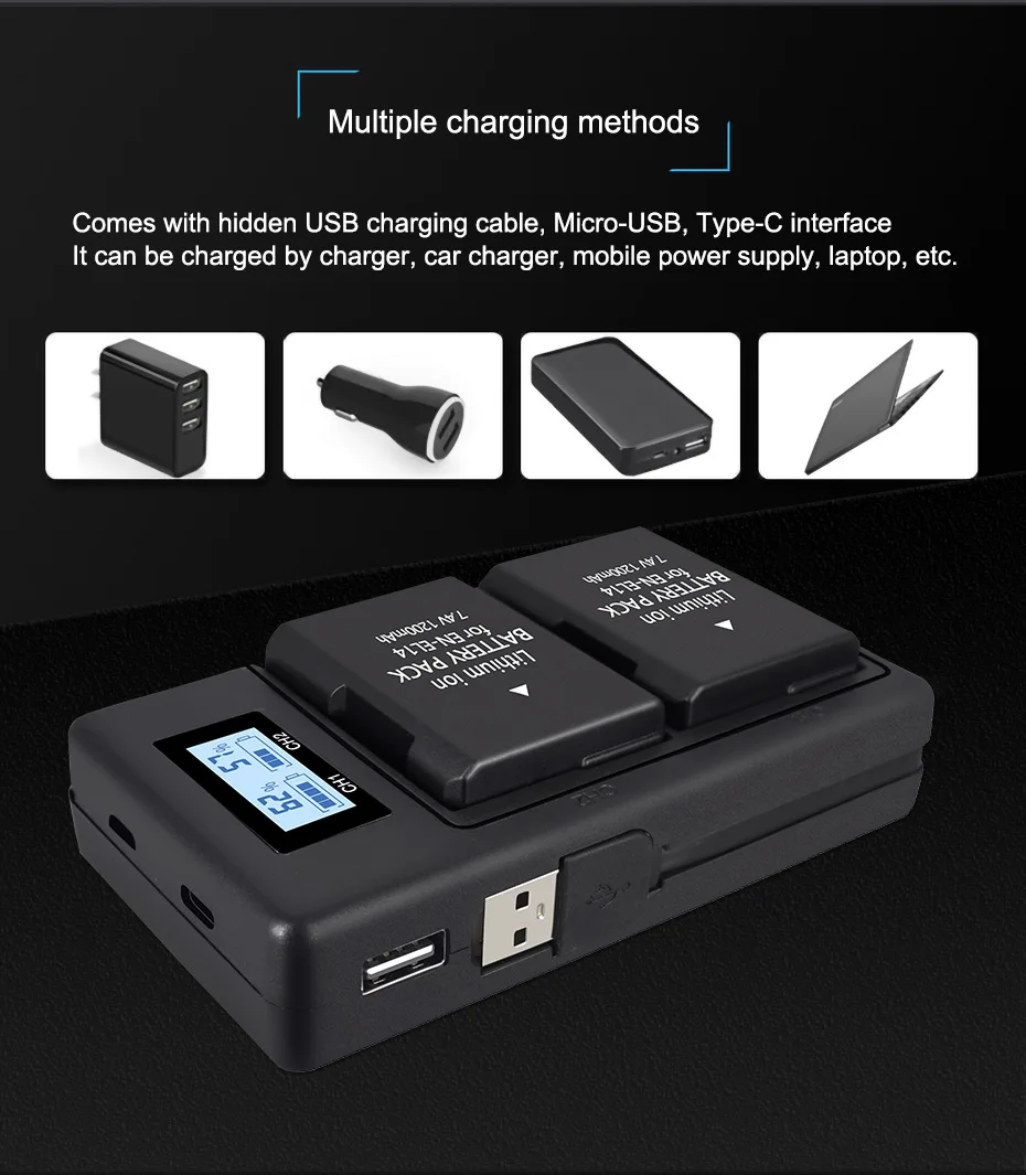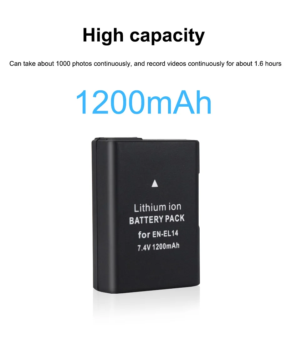 7,4 V 1200 мА/ч, EN-EL14 NIKON литий-ионный аккумулятор ☞Главные особенности: ♣. 100% новый брендовый товар высокого качества. ♣. Товар не соответствует описанию. ♣. Высокое количество запасённой энергии на единицу веса (батареи), со сверхдолгой жизнью, устройство чтения карт памяти. ♣. Высокая производительность/литий-ионная аккумуляторная батарея с премиум сотовый. ♣. Дополнительное питание для вашего цифрового видео камеры/видеокамеры. Длительность съемки не уступает оригинальному. ♣. Защита от перегрева и защита от перегрузки. ☞Технические характеристики: • Емкость: 1200 мА-ч * Напряжение: 7,4 V • Тип батареи: литий-ионный * Применение: камера • Номер модели: EN-EL14 * Тип продукта: литий-ионная аккумуляторная батарея * Упаковка: Да ☞Совместимые модели: Nikon D3100 Nikon D3200 Nikon D3300 Nikon D3400 Nikon D3500 Nikon D5100 Nikon D5200 Nikon D5300 Nikon D5100E Nikon D5400 Nikon D5500 Nikon D5600 Руководство по эксплуатации Nikon Coolpix P7000 Руководство по эксплуатации Nikon Coolpix P7100 Руководство по эксплуатации Nikon Coolpix P7700 Руководство по эксплуатации Nikon Coolpix P8000 Руководство по эксплуатации Nikon Coolpix P7800 Руководство по эксплуатации Nikon Coolpix P7200 Nikon DF MH-24 ☞Упаковка включает в себя :( зависит от того, что в комплекте Вы выбираете) 3x EN-EL14 батарея 1x зарядное устройство с ЖК-дисплеем ☞Внимание: ※ Заряда аккумулятора перед использованием ※ Использовать только конкретное зарядное устройство ※ Держать клеммы аккумуляторной батареи в чистоте ※ Всегда хранить батарею в сухом месте ※ Не короткого замыкания батарейный блок ※ Не разбирайте батарейный блок ※ Не подвергайте батарею воздействию высоких температур
