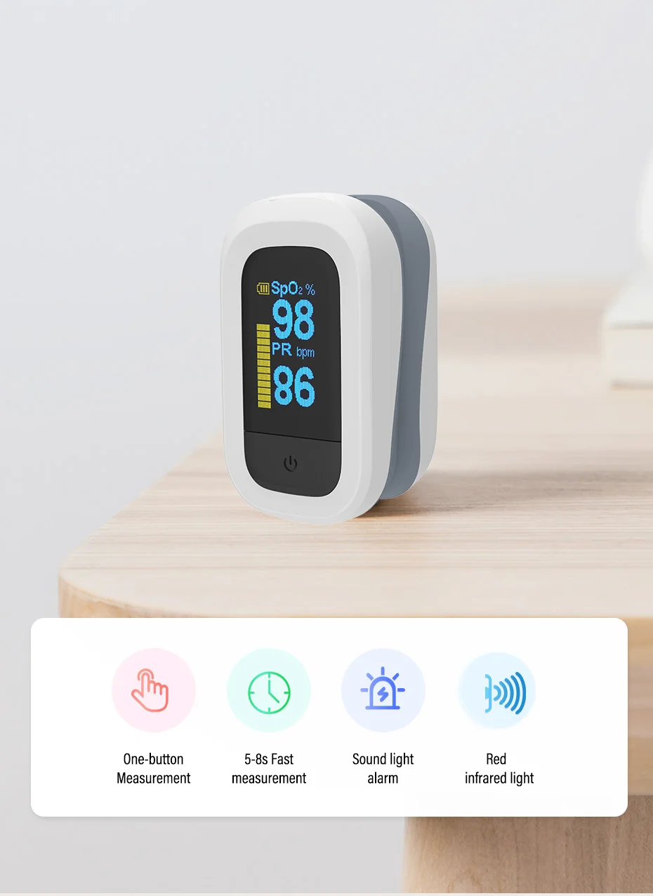 Надежная точность и долговечность Более точное измерение, более комфортный опыт, более выгодная цена Может измерять непрерывно в течение длительного времени Низкое энергопотребление, 50 часов непрерывной работы. Низкая перфузия ≤ 0.4% Автоматическое отключение при отсутствии сигнала Небольшой и легкий вес, удобно носить с собой Широко используется в больницах, домашних медицинских работах, кислородных баллонах, общественных медицинских центрах, альпийских областях, спортивной медицине и т. Д. Работает от международной батареи AAA, вы можете купить где угодно