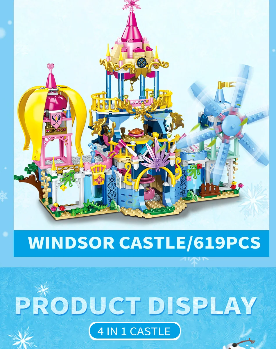 HUIQIBAO, 619 шт., городской друг, Снежный замок, ветряная мельница, строительные блоки, принцесса, девочки, друзья, фигурки, кирпичи, игрушки, подарки для детей