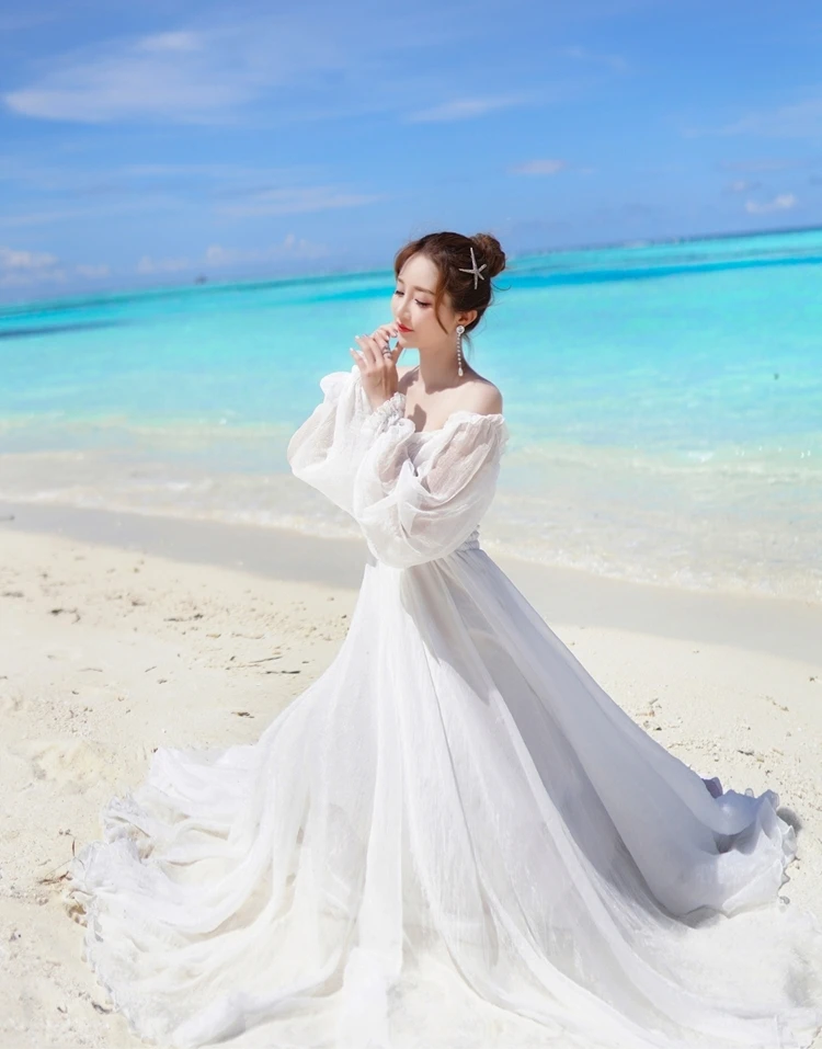 Летнее шифоновое платье для женщин, элегантное, с длинным рукавом, винтажное, с вырезом лодочкой, а-силуэт, белые, пляжные, вечерние платья Vestidos