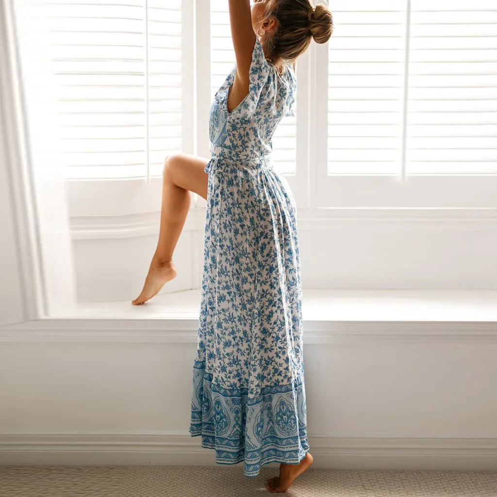 Женское богемное платье с v-образным вырезом, летнее вечернее пляжное длинное платье, летнее праздничное пляжное платье, vestidos de fiesta