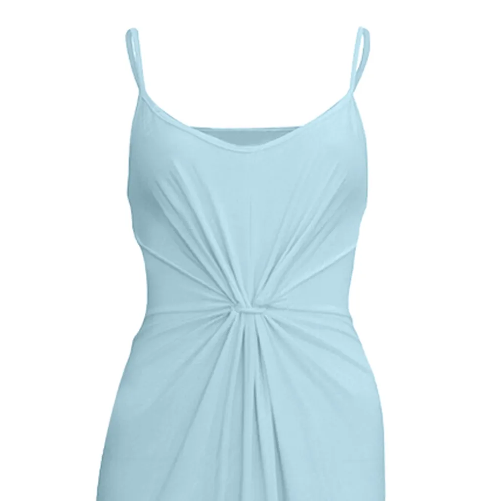 Женское облегающее платье миди без рукавов с завязками спереди и разрезом