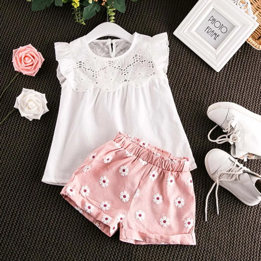 Одежда для маленьких девочек; Футболка; Жилет; Топ + шорты; Брюки; Комплект из 2 предметов