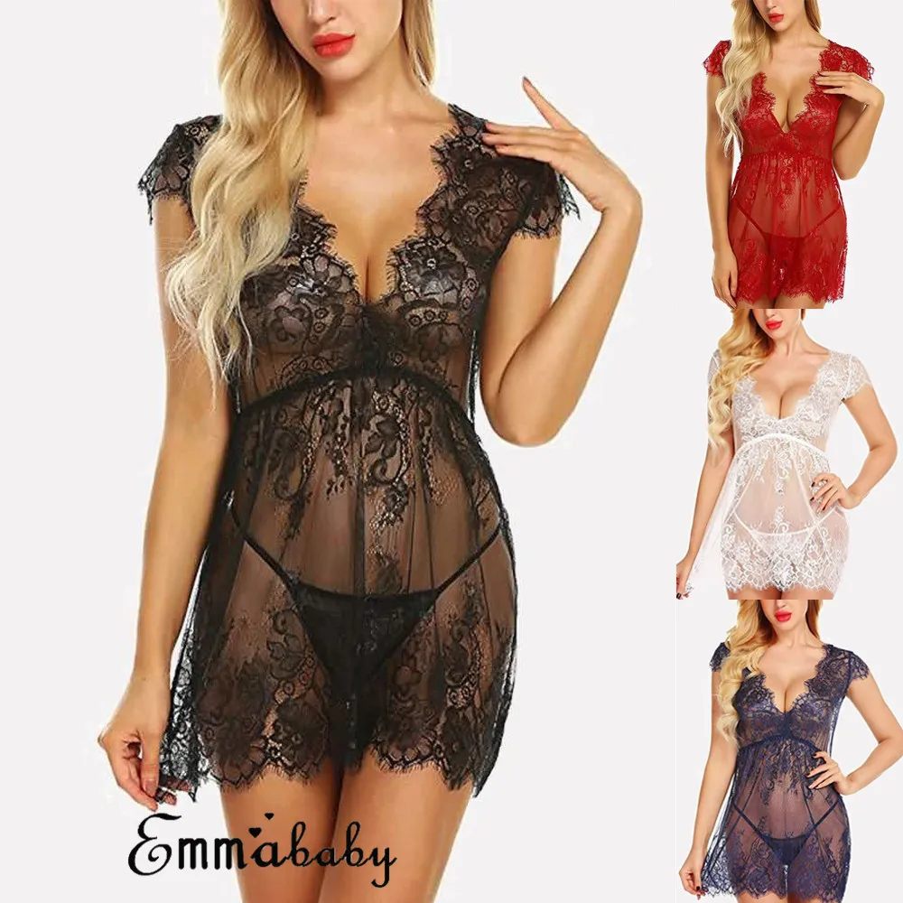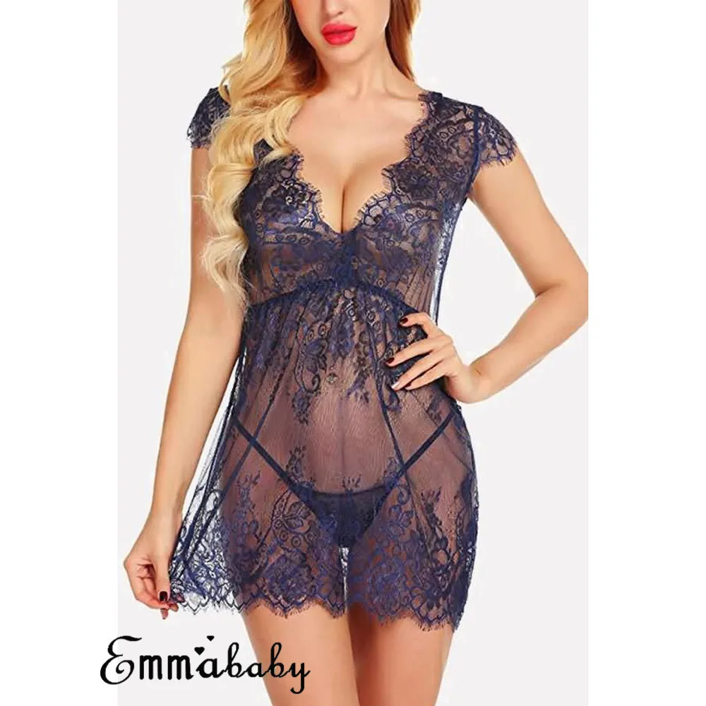 Новое модное сексуальное женское нижнее белье, кружевное платье, ночное белье, нижнее белье, ночная сорочка + стринги