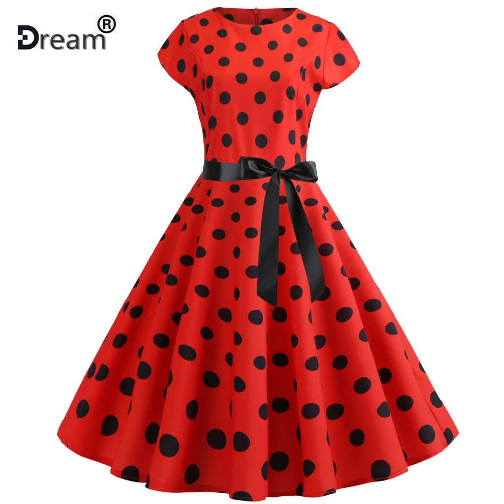 Красное черное платье в горошек женские летние платья с коротким рукавом Хепберн ретро платье винтажное платье 50s 60s рокабилли Pin Up размера плюсUS $14,27 Долларов США/шт