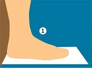 2. Проведите прямую линию (параллельно стене) на самом выступающем пальце каждой стопы, как показано на рисунке.