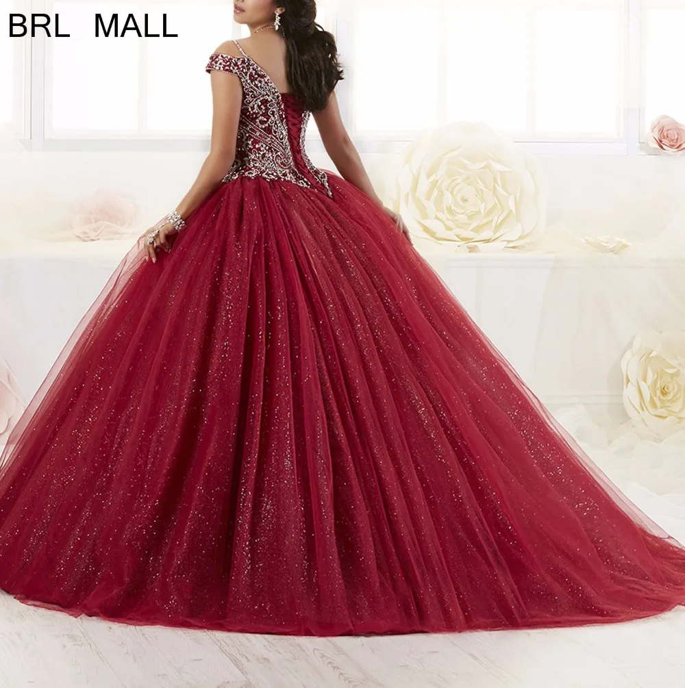 Тяжелое вышитое бисером кристаллы бордовые платья Quinceanera бальные сладкий 16 для