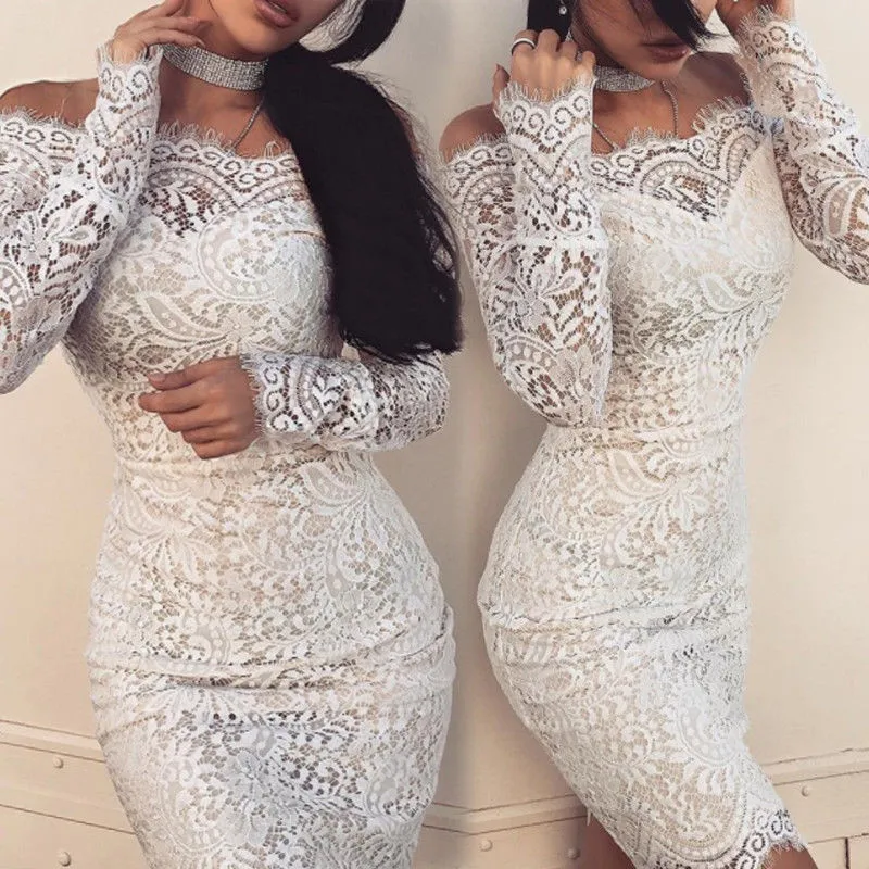 | Здравствуйте! Добро пожаловать в наш магазин! Качество является первым с лучшим обслуживанием. Все покупатели — наши друзья.Модный дизайн, 100% новый бренд, высокое качество!Материал:Полиэстер, кружевоЦвет:БелыйСтиль:Модный сексуальныйДля женщинПлатье с открытыми плечамиРазмер:S M L XLТаблица размеров