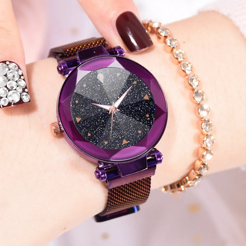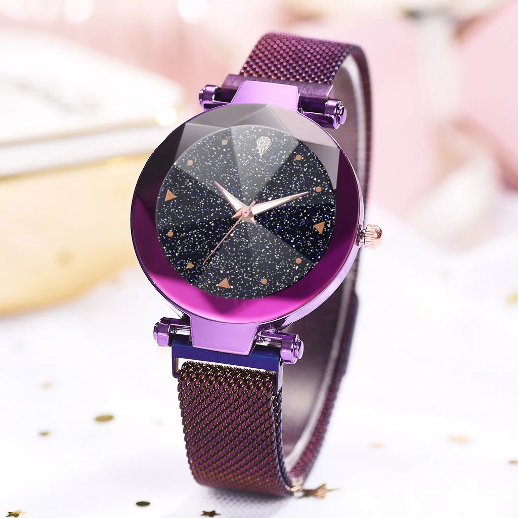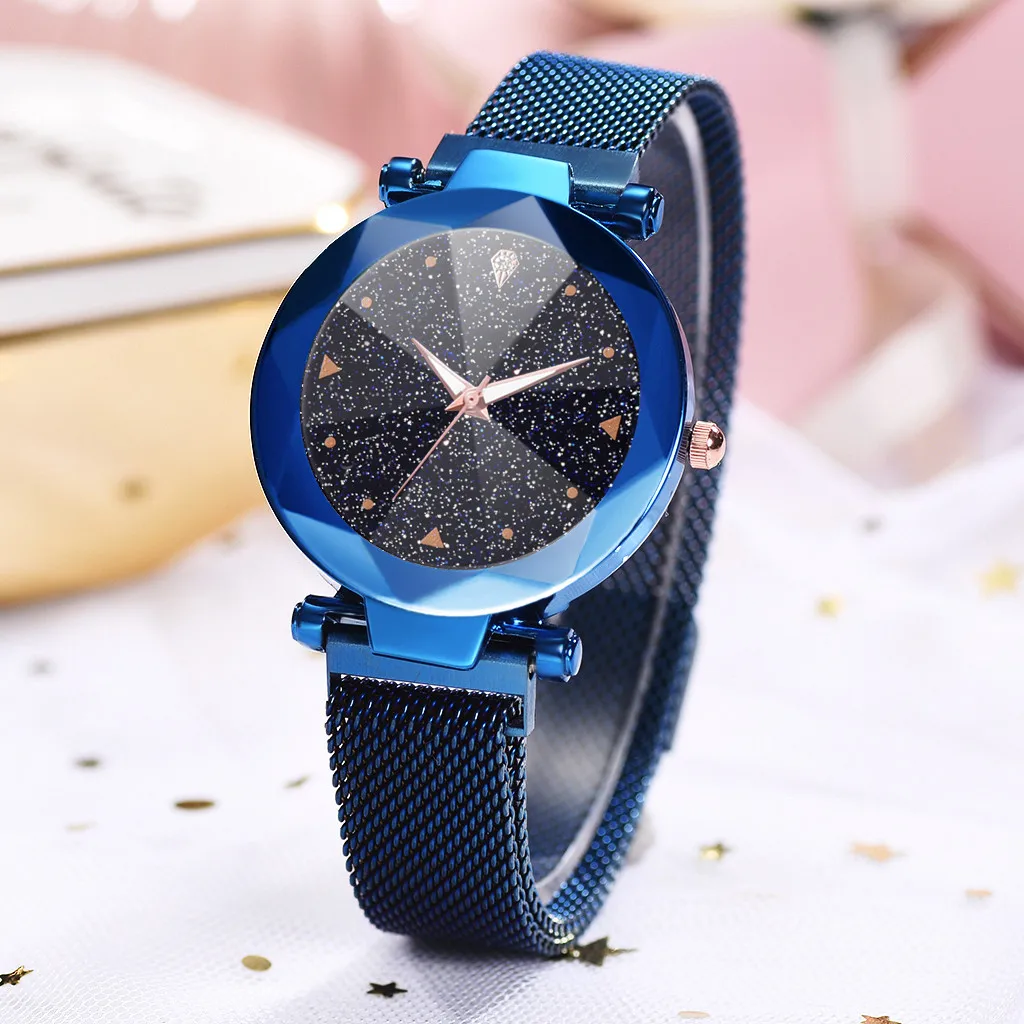 Модные звездное небо Выпуклое стекло кварцевая сетка с магнитной пряжкой женские часы