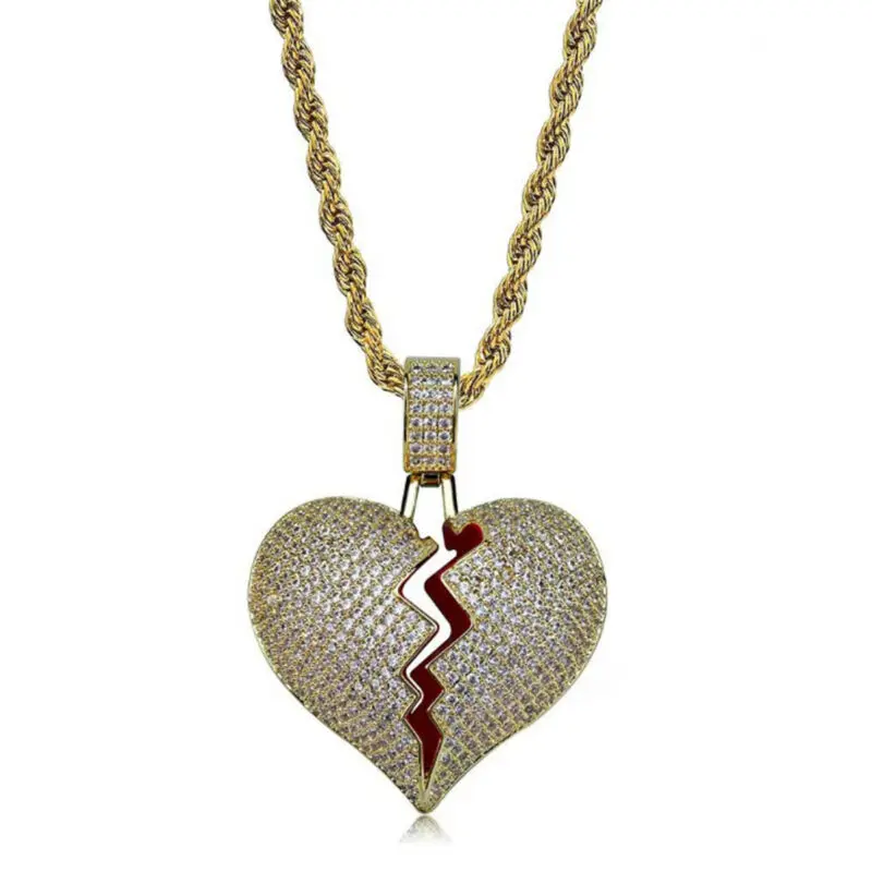 Ожерелье из медной металлической веревки с подвеской в виде разбитого сердца с кубическим цирконием