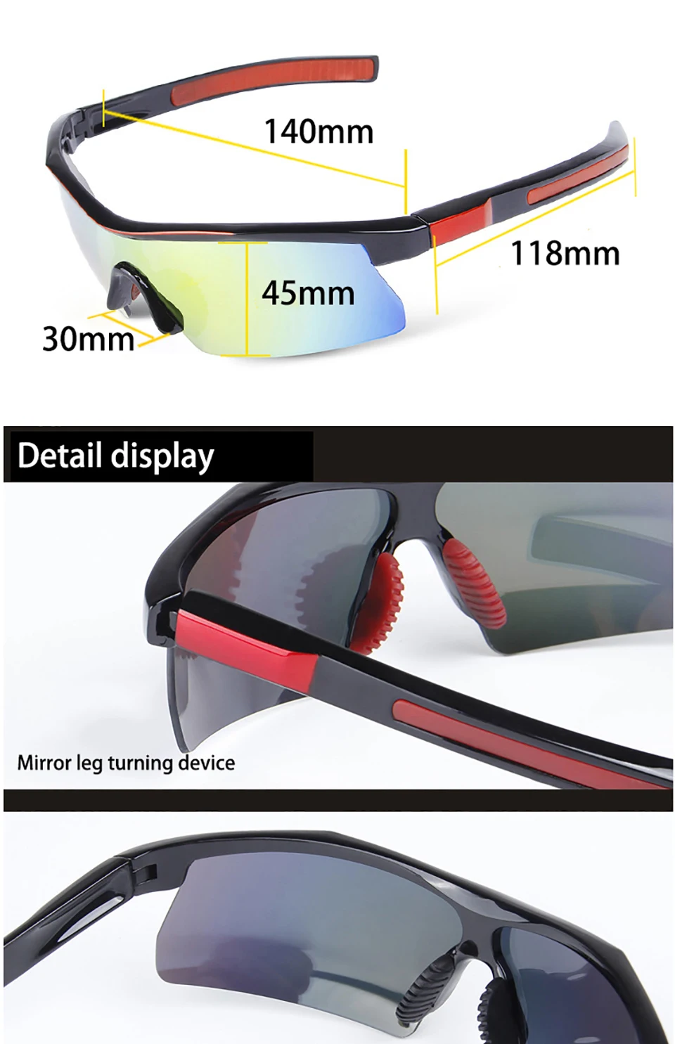 Посылка: 1 Жесткая защитная коробка 5 пар линз (включая 1 поляризованную линзу) 1 сумка для очков 1 чистящая ткань 1 шлейка для движения Особенность: Ударопрочные, небьющиеся линзы из поликарбоната (ПК) Линзы и оправа с высокой устойчивостью к разрыву 100% УФ-защита Превосходное оптическое качество Подходит для различных контуров лица Поляризованные очки Сертификация: США: ANSI Z80.3-2001 ЕС: EN 1836: 2005 + EN 1836: 2005/AC: 2006 AU: AS 1067-2003