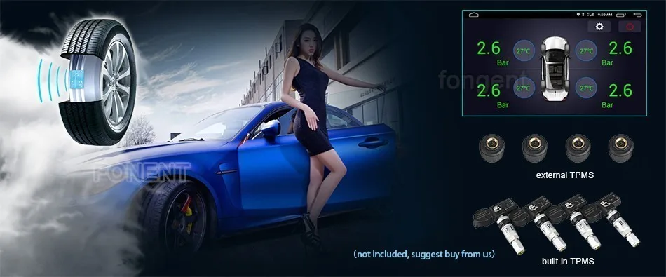 Может отображать температуру и давление в шинах с высокой точностью, чтобы контролировать 4 шины на экране для безопасного вождения.