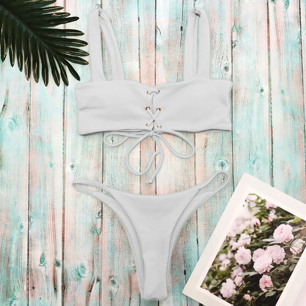 Модные женские сексуальные одноцветные бандажные стринги купальник пляжная одежда из двух частей бикини