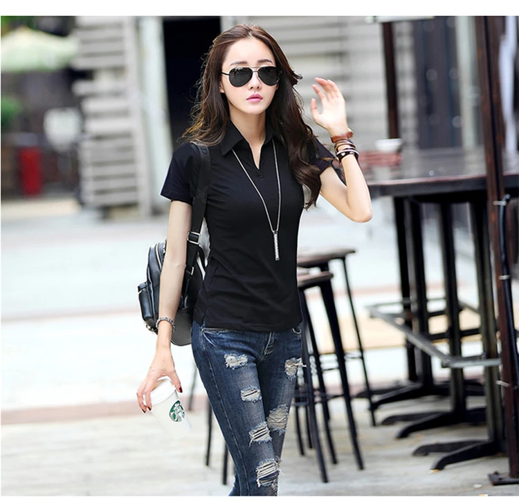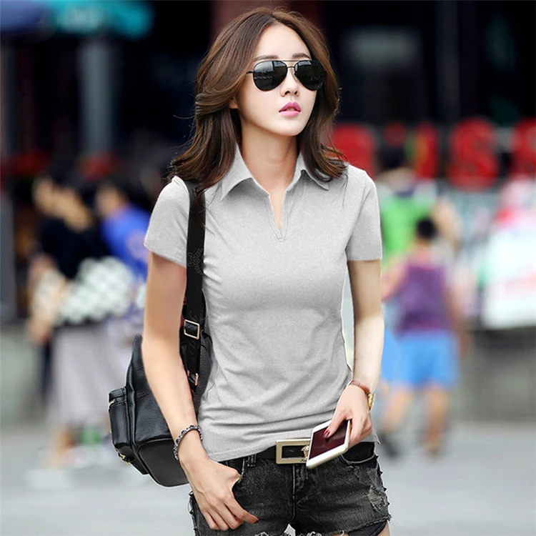 2019 летние женские повседневные футболки с отложным воротником хлопковые дышащие