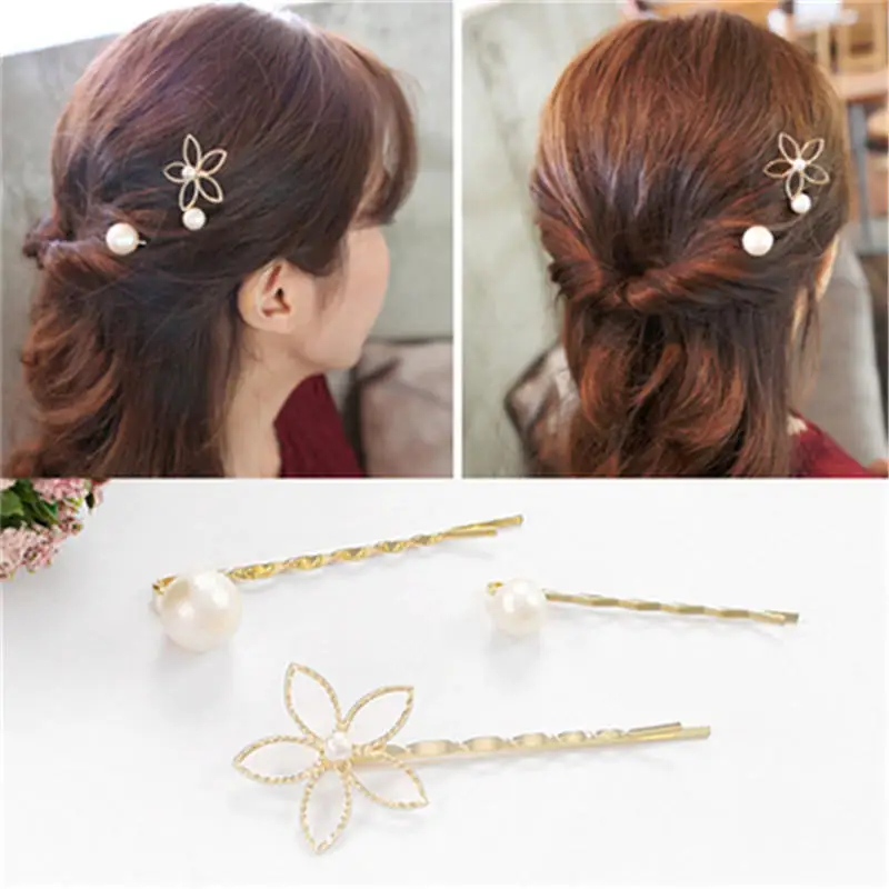 Блестящий корейский цветок, лидер продаж, изысканные заколки для волос с золотыми звездами, красивое сердце, жемчуг, милый свадебный 1 комплект, бант, кристалл, для девочек
