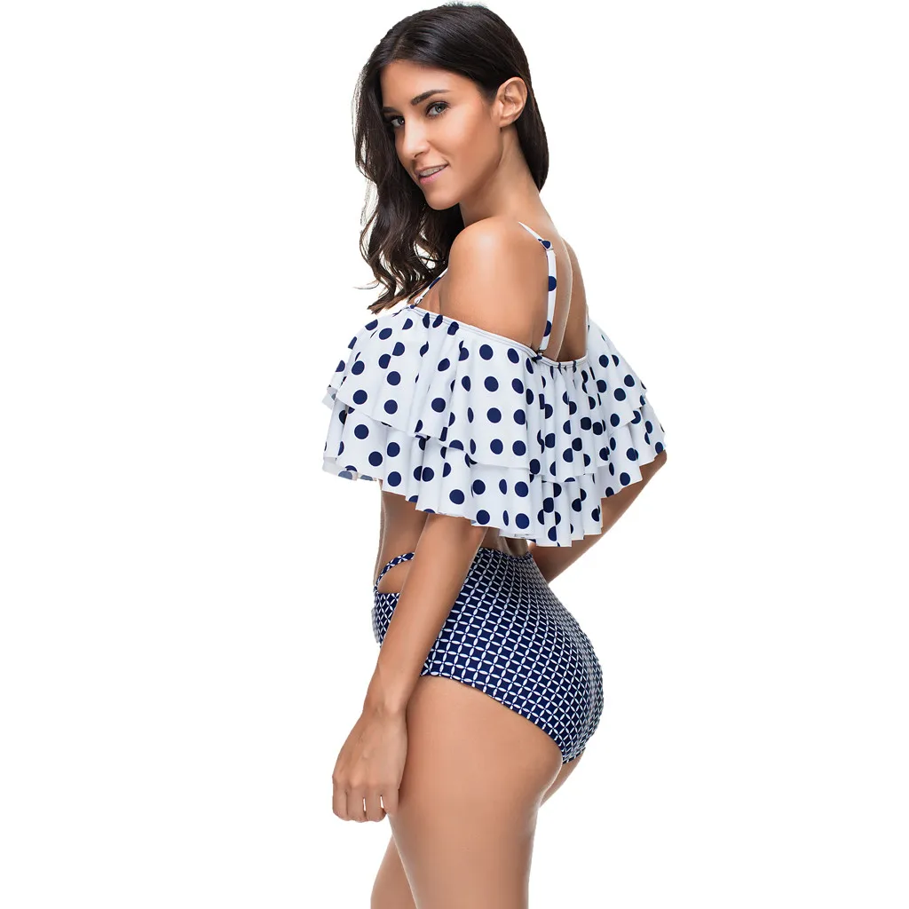 Для женщин с высокой талией в стиле бохо принт купальники с оборками, купальник, пуш-ап, бикини с пуш-апом