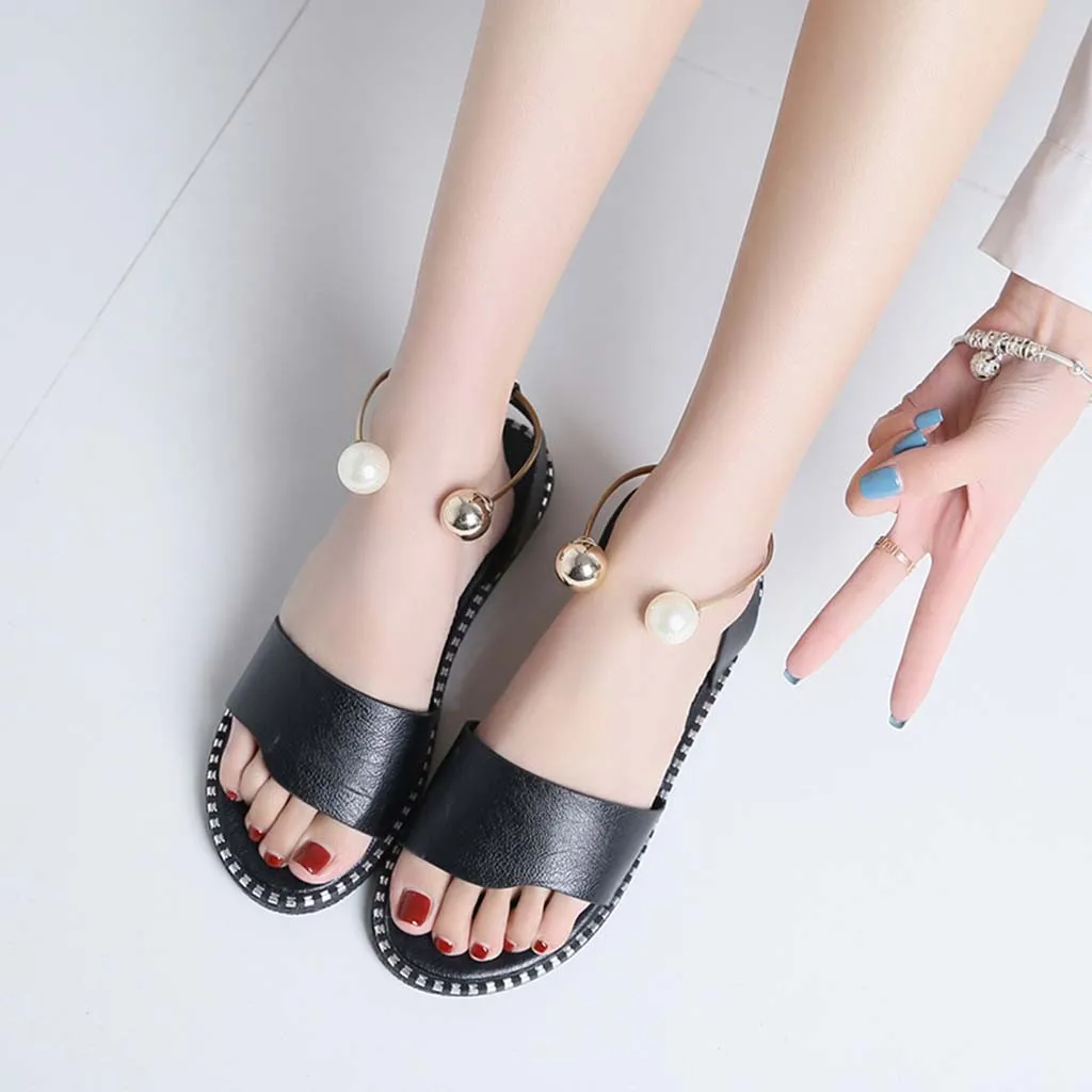 Женская обувьМодныйОднотонный круглый носокПовседневные сандалии с жемчужной пряжкой