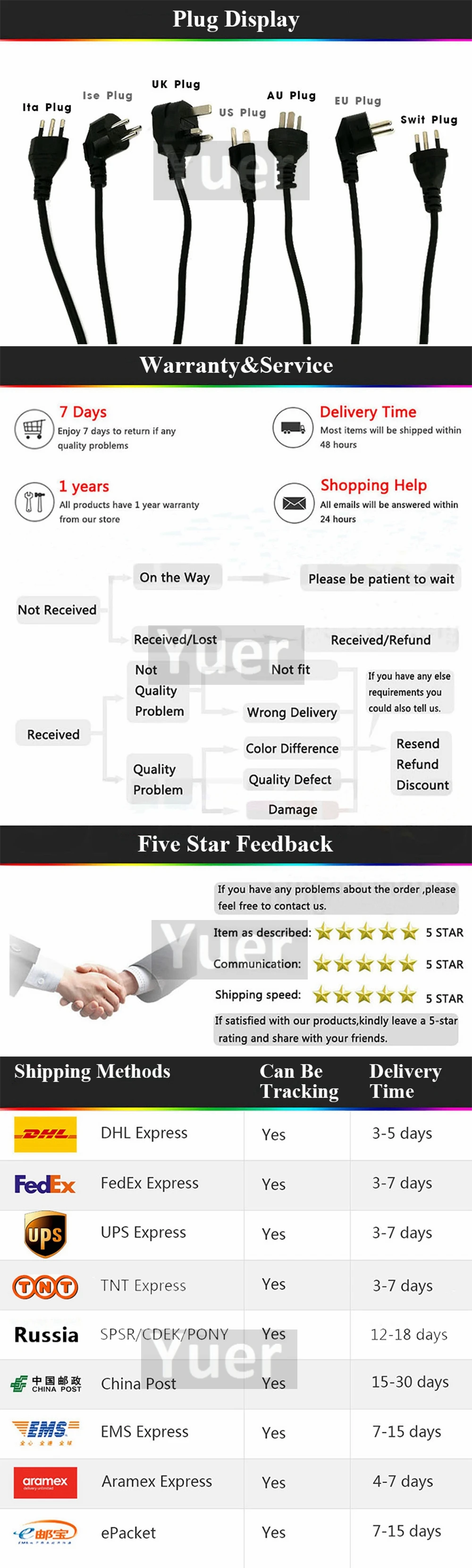 Все товары будут отправлены в течение 1-7 рабочих дней после завершения оплаты. Все ems будут отправлены через DHL/UPS/TNT/Fedex/EMS, что обычно занимает 7-15 дней. Международная доставка требует более сложных процедур доставки (таких как таможня обеих стран, транзитные станции и т. Д.), также будет влиять на многие факторы, такие как праздники, погодные условия и т. Д., таким образом, возможно, потребуется больше времени для доставки ваших товаров в конечный пункт назначения. Спасибо за понимание по этому вопросу. Импортные пошлины, налоги на добавленную стоимость и любые другие сборы не включены в цену товара или стоимость доставки.