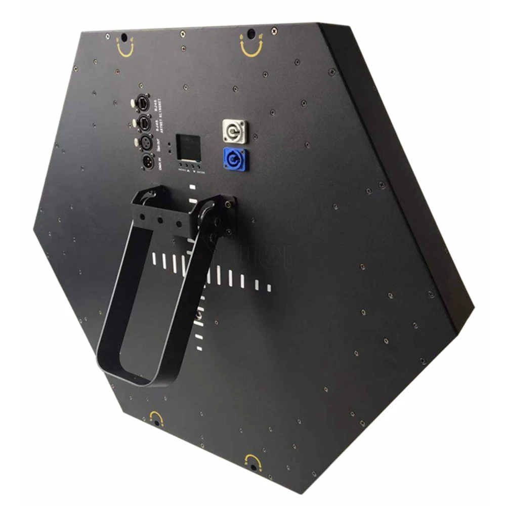 Напряжение: AC100V-240V В переменного тока, 50/60 Гц Мощность: 200W Светильник источник: 504pcs SMD RGB (трехцветный) Светодиоды высокой яркости Пиксели матрицы: 504 (Чип на плате) Срок службы: 100000 часов Цветовая температура: 3200K-5600K Функция: коллоквелл и антиколлоквелл бесконечное Вращение с регулируемой скоростью, каждый сегмент RGB контролируется Встроенные программы: эффекты с цветом, затемнением, стробоскопическим сигналом и вызовами Диммер: 0-100% Линейный диммер Стробоскоп: 0-20 раз/сек Канал: 5/8/38/217/221CH опционально Режим управления: DMX512 / Master-slave/ Sound / Auto Mode Степень защиты оболочки: IP20 Размеры: 705x610x85mm Вес: 7,1 кг