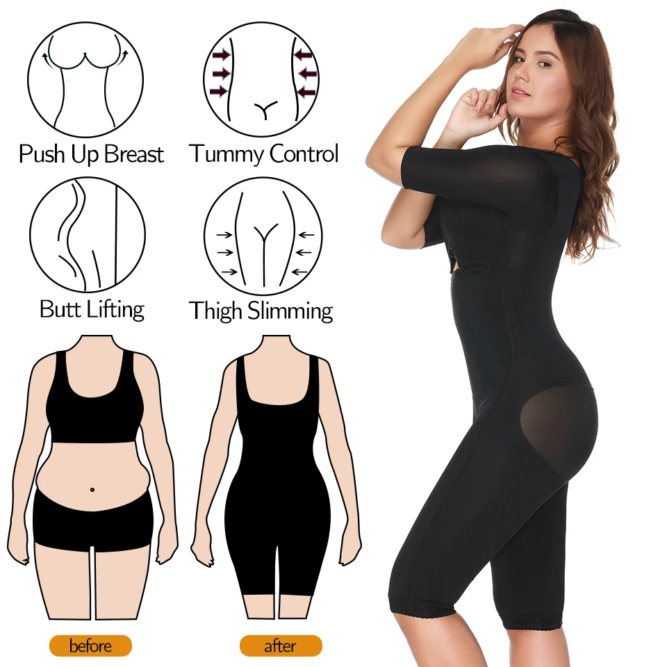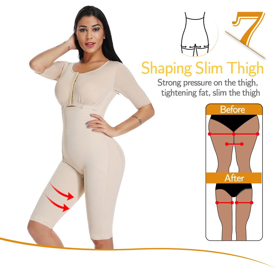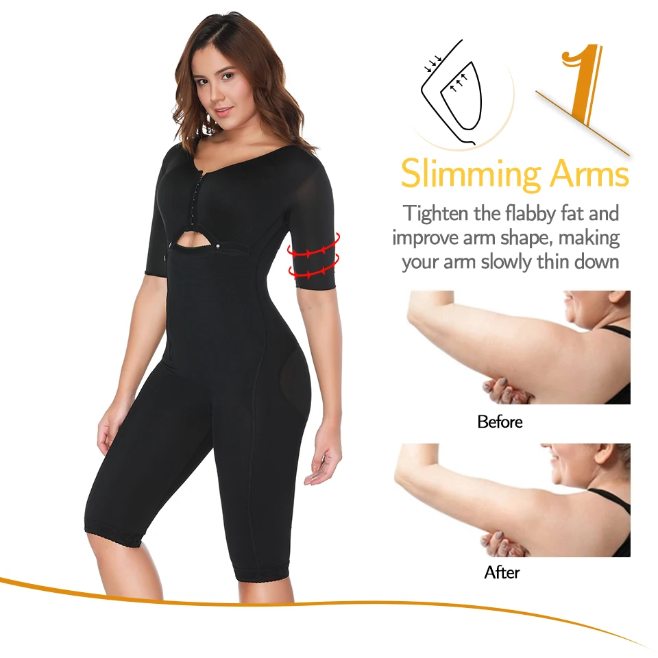 Средние рукава будут эффективно сжимать и держать в дряблых жировых руках, груди и высокой спине, улучшая верхнюю осанку мгновенно