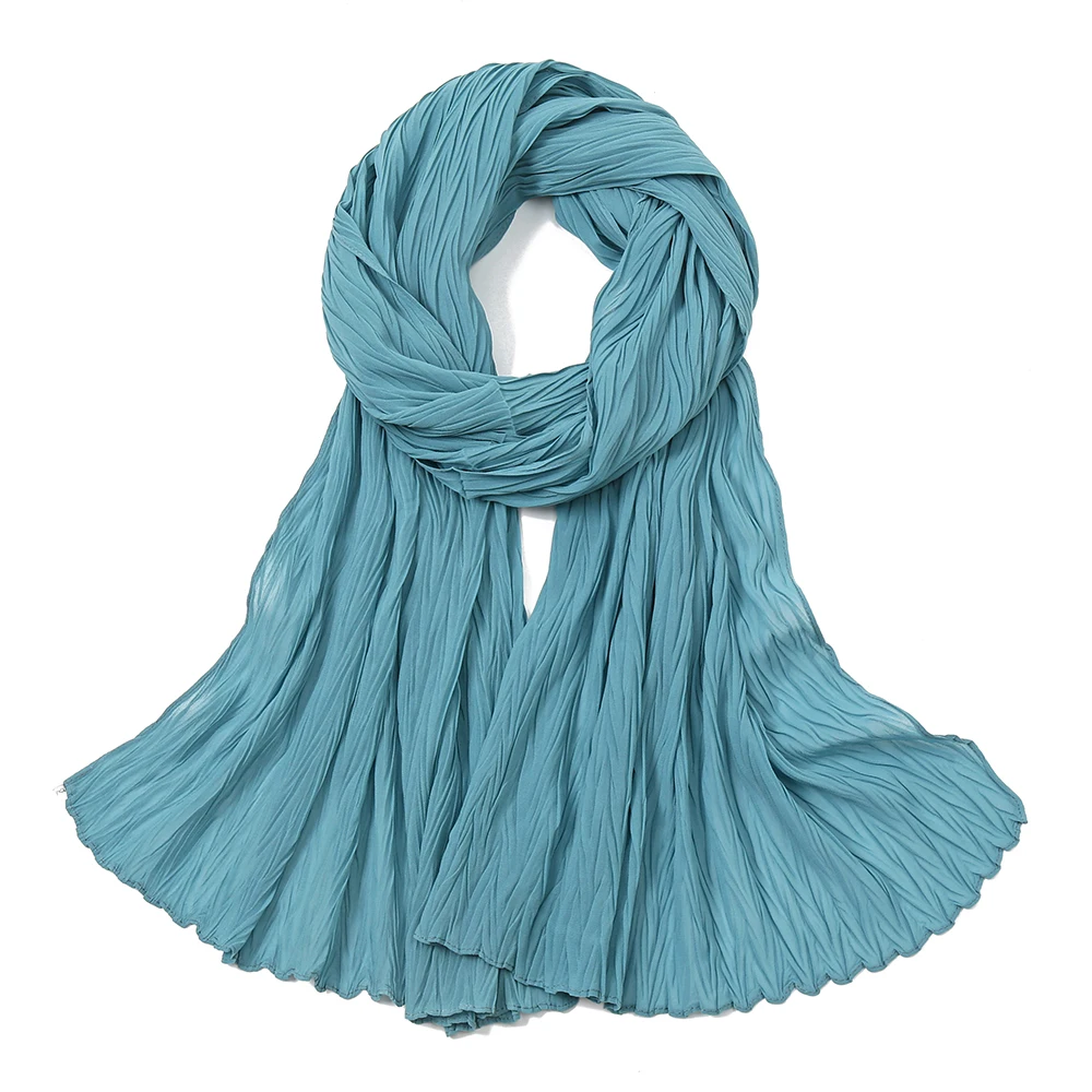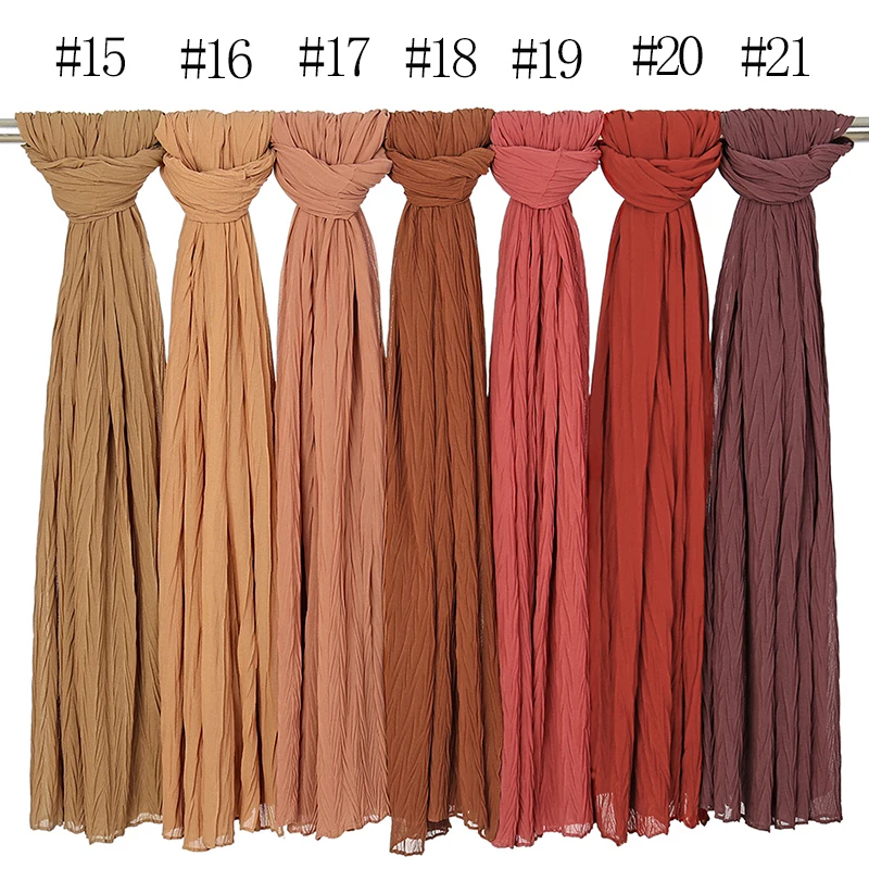 Женский простой шифоновый шарф-хиджаб с пузырьками, однотонные длинные шарфы, повязка на голову, тюрбан, макси мусульманские шали, 20 цветов