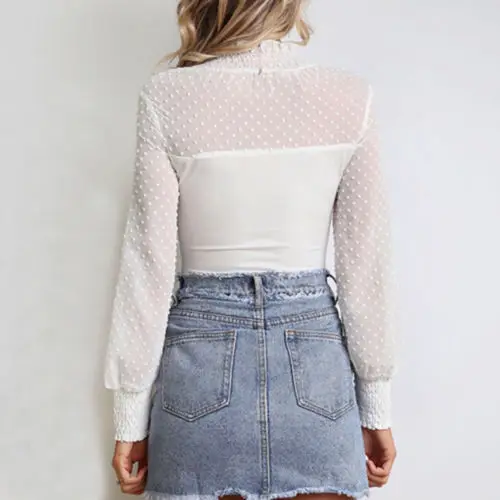 Сексуальное однотонное шифоновое облегающее кружевное боди с высоким воротом для женщин, новинка 2020, весна-осень, облегающее боди с длинным рукавом в стиле пэчворк для женщин
